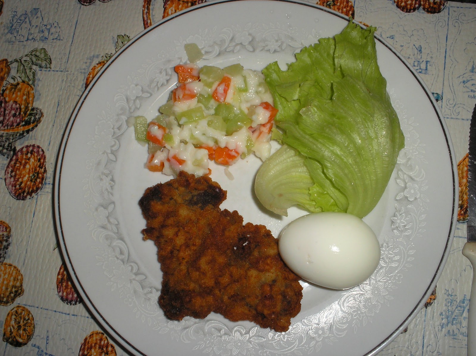 Creme de Verdura, ovo, alface e Bifinho a Milanes |